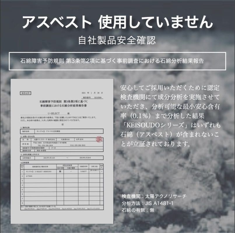 昨今、世の中を騒がしております「中国製珪藻土入りバスマット」における、基準値を超えるアスベスト混入の可能性と自主回収に関する報道を受け、弊社ではお客様に安心して製品をご採用いただくため石綿(アスベスト)成分分析を実施致しました...